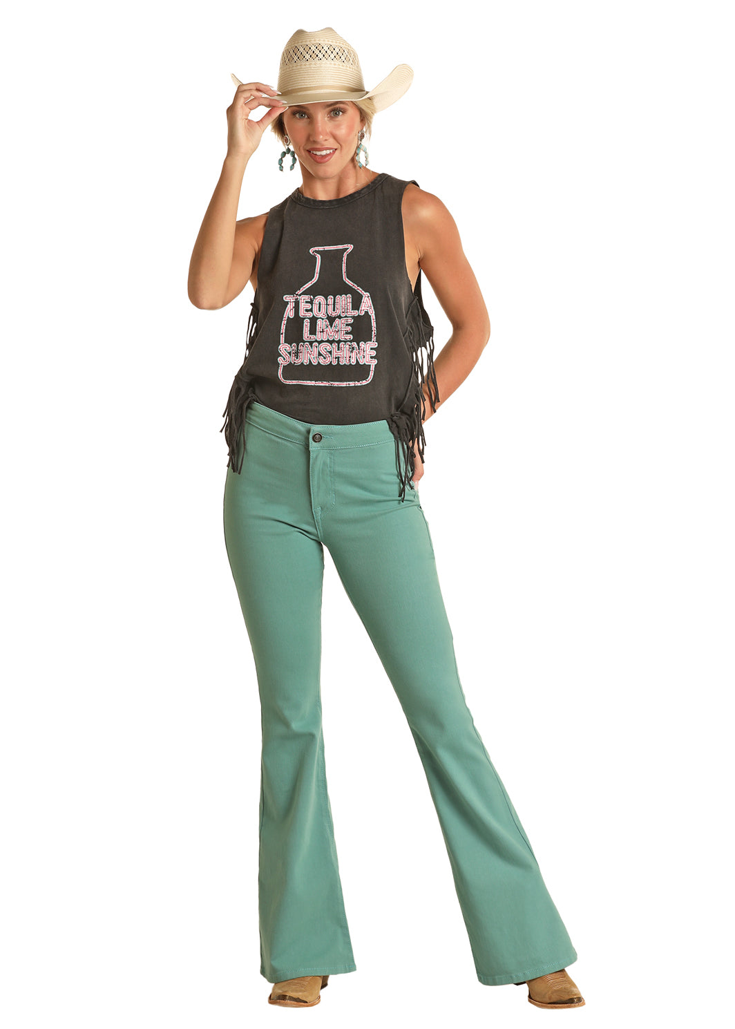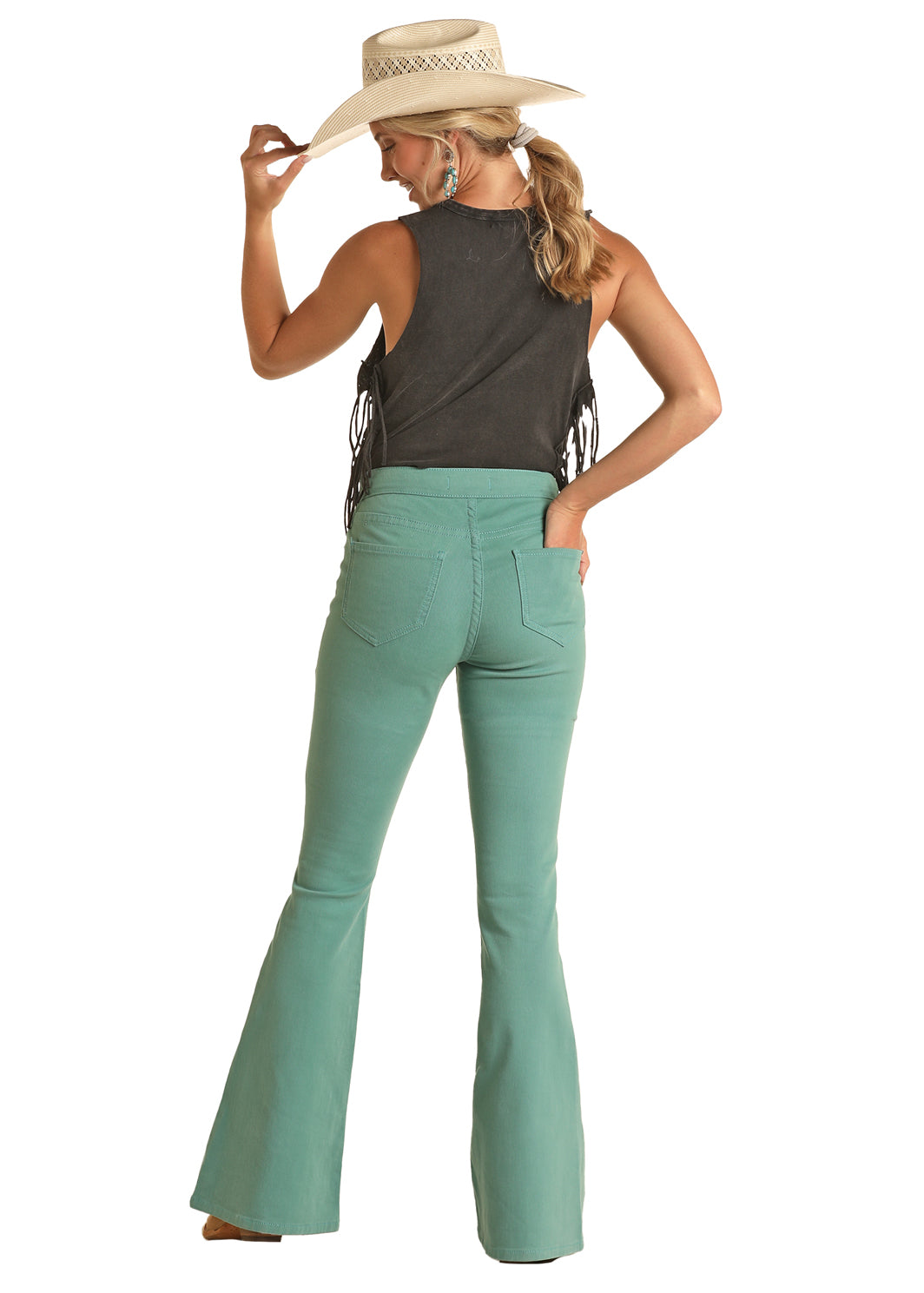 Vendor:Rock & Roll Denim Ladies Turquoise Button Flare JeanRock & Roll Denim