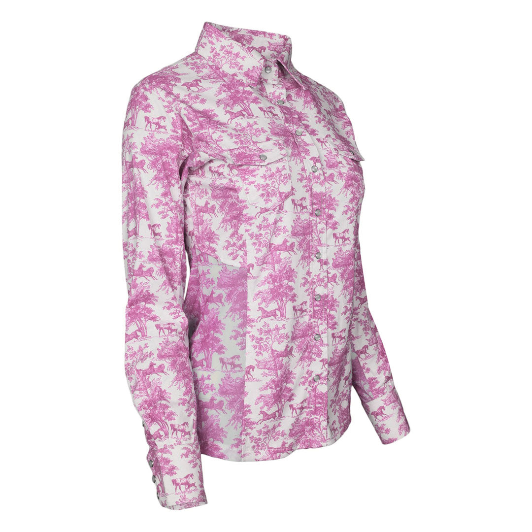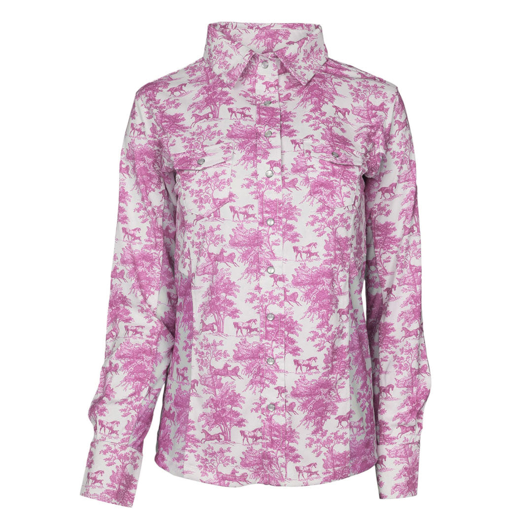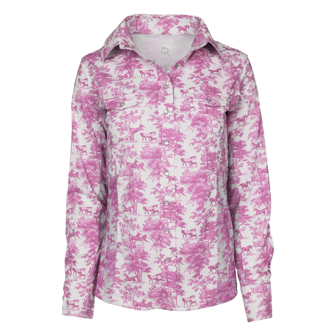 NEWVendor:Dapplebay Equestrian Toile Button Down Western Shirt-Rose/WhiteDapplebay