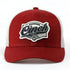 This red Flexfit trucker cap engineered by CINCH provides stylish shade without sacrificing durability or comfort. Design details include a front panel CINCH logo patch and a secure back snap closure.