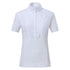 High-end competition shirt with shaped pleated cotton insert on centre front * Perforated jersey providing ventilation * Stand-up collar (6 cm high) with refined rhinestone artwork * Clean finishing with taped seams * Blind placket with snapbuttons