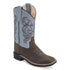 Old West Children's Thunder Brown and Sky Blue All Over Leatherette Broad Square Toe Boot