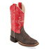 Old West Children's Wipe Out Brown and Dark Pink Broad Square Toe Boots