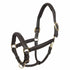 Henri de Rivel Laureate Fancy Stitched Grippy Leather Halter with Brass Fittings Made from lightweight, soft leather, this halter is designed for everyday use or shows. The mono crown design offers a streamlined fit, and the white stitched detail on the front of the noseband adds a refined look. Solid brass fittings and a throatlatch snap make it easy to put on and take off while ensuring durability.