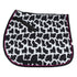 Lettia's Cow Print Baby Pad is Fun and function all in one! Thanks to the additional girth loops, you can use this saddle pad as a traditional baby pad or by itself to show off the fun designs. Dimensions: 22"X19". This baby pad is part of the Cow Print collection which consists of this pad, an all purpose pad, and socks (not shown).