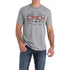 Carbon Gray tri-color cotton-poly jersey tee with black and red front screen print.