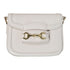 Designer-look, with classic equestrian snaffle bit embellishment. Vegan leather with the look of the real thing. Fold-over top and zippered main compartment with interior accessory pocket. Shoulder strap adjusts from 22-40”.